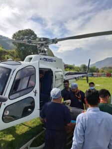 उन्होंने बताया कि मरीज की स्थिति को देखते हुए तत्काल हेली सेवा के लिए संपर्क किया गया। आपदा प्रबंधन अधिकारी श्री दीपेश काला के समन्वय एवं सक्रिय प्रयासों से शीघ्र हेली सेवा उपलब्ध कराई गई। शासन के निर्देश पर हेली सेवा समय पर हंस फाउंडेशन पहुंची, जहां से घायल महिला को एयरलिफ्ट कर एम्स ऋषिकेश भेजा गया।