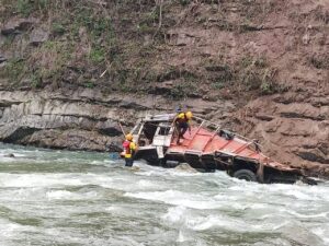 जानकारी के अनुसार पहला हादसा जूडो क्षेत्र के पास हुआ, जहां एक ट्रक सीधे नदी में जा गिरा। राहत की बात यह रही कि ट्रक में सवार दोनों लोग सुरक्षित बाहर निकल आए।
