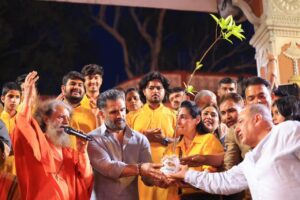 माँ गंगा के तट पर दीपों का प्रकाश, वेदमंत्रों की अनुगूँज, शंखनाद की पवित्र ध्वनि और वातावरण में व्याप्त शांति ने उनके अंतर्मन को गहराई से स्पर्श किया। पूज्य स्वामी जी के साथ आत्मीय संवाद के दौरान भारतीय सिनेमा की सकारात्मक भूमिका, सनातन संस्कृति के वैश्विक संदेश, प्रकृति संरक्षण तथा युवाओं को सही दिशा देने जैसे विषयों पर सार्थक चर्चा हुई।