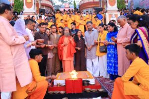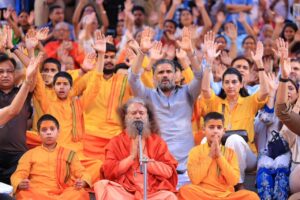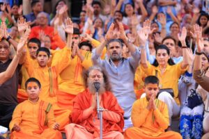 अंत में पूज्य स्वामी जी के पावन सान्निध्य में श्री सुनील शेट्टी जी एवं श्रीमती माना शेट्टी जी ने राष्ट्र, समाज, विश्व शांति और समस्त मानवता के कल्याण हेतु प्रार्थना की।