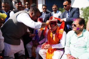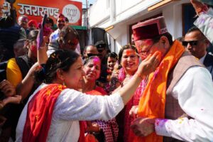 उत्तराखंड की राजधानी देहरादून में भाजपा प्रदेश मुख्यालय में मुख्यमंत्री पुष्कर सिंह धामी, भाजपा प्रदेश अध्यक्ष महेंद्र भट्ट सहित वरिष्ठ नेताओं और कार्यकर्ताओं ने एक दूसरे को रंग लगाकर होली की शुभकामनाएं दी।